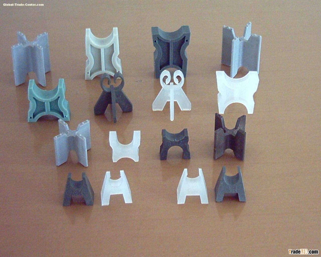 Plastic space block for protective layer of reinforcing steel bar is designed according to the requirement of national steel concrete construal design norm. It is widely applied in the civil and industrial construction of buildings, roads, bridges, tunnels, airports, subway and so on.
