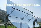 Parabolic Groove Solar Mirror: It will take a large area of parabolic trough solar mirrors, to track the sun and achieve the maximum sunshine concentration on the collector tube,the transferred fluid in the tube will collect the solar radiation and convert the solar energy into heat, the heat will generate steam to drive the steam turbine to generate elecricity.