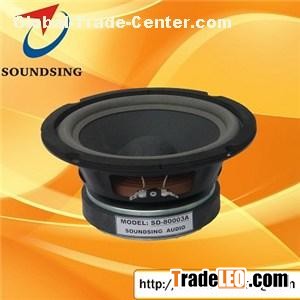 Soundsing Audio Manufacturing Co.,Ltd is one of the leading China 8" karaoke speaker manufacturers and suppliers, providing with 8" metal frame speaker wholesale, welcome to import high quality products from our factory. SD-80003A is a metal frame mid bass speaker for karaoke. Non press foam edge cone, 2” voice coil, It is suitable for high quality and high power karaoke cabinets Products specification Size:8” Rated Power: 150W Peak Power: 300W Impedance: 8Ohm DC Impedance: 4.5Ohm Sensitivity:90dB Frequency Response:45hz-3.5khz Voice Coil Diameter: 2 Inch Voice Coil Wire Material: Copper Bobbin Material: ASV Voice Coil Layers: 2 Layers Dampers: polycotton Cone: paper Magnet Size: 40OZ Mounting Detail: Outer diameter:210mm/8” Hole Cut Out diameter:180mm/7.08” Depth:100mm/3.93” Packing Information: 1 speaker one carton,8 brown inner boxes packed into one brown outer box Carton Size: 48*48*27.5 Other Information Place of Original: Guangzhou, China Payment Terms: T/T, Western Union, Money Gram Port of Delivery: Huangpu, Guangzhou, China Production Lead Time:30days after receive 30% T/T