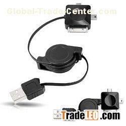 Q-USB multi-functional USB retractable cable with three connectors: iPhone/iPod, Mini, Micro to enjoy Sync and Charging on the go.
