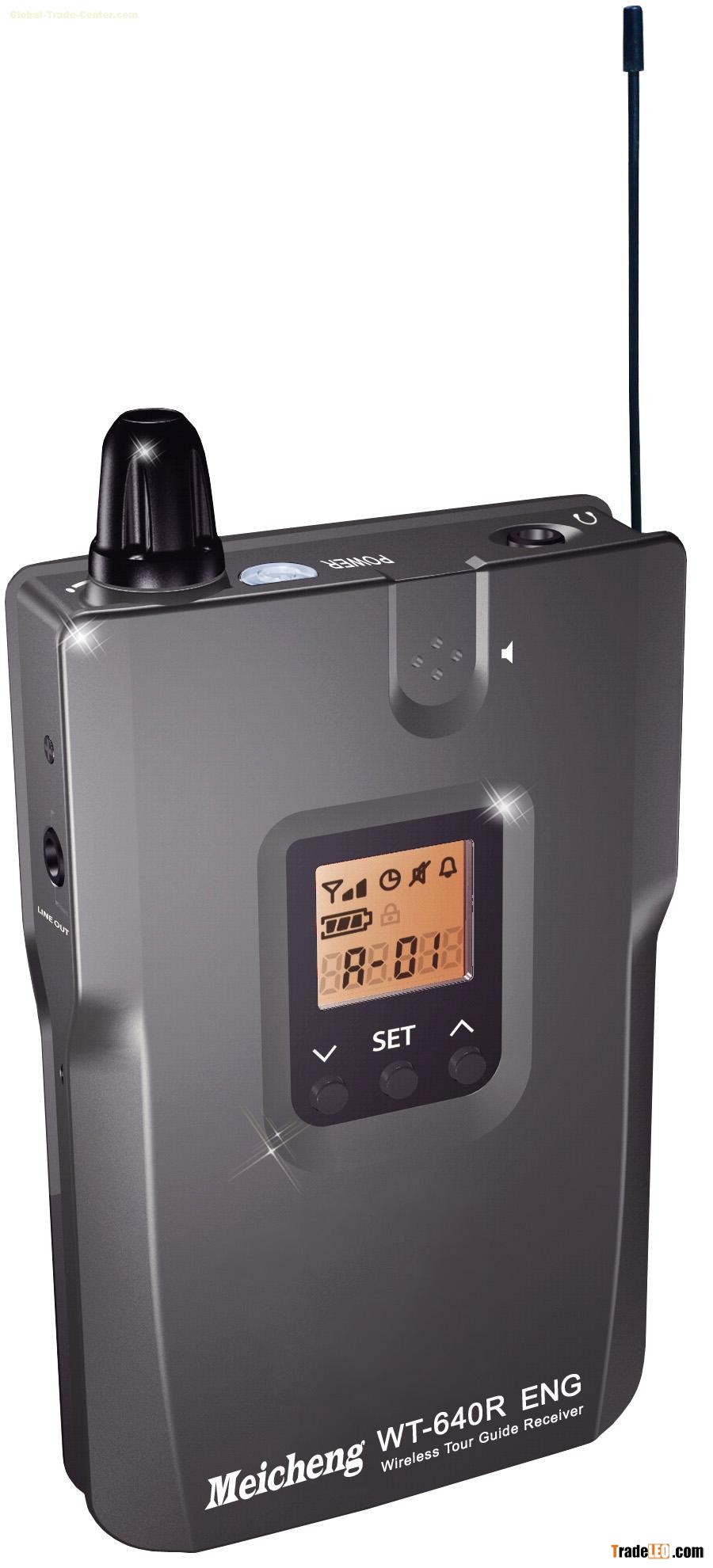 WT-640T/R Professional wireless studio audio of digital transmit system. The series offer the perfect solution for performers, musicians, tour staffs and simultaneous interpreters. The system included light and portable type transmitter (WT-640T) and light and portable type receiver (WT-640R). It adopts UHF channel and PLL (phase lock loop) frequency of synthesizer design enable to select multi-channel and let users to distinguish and operate easily through LCD panel display.