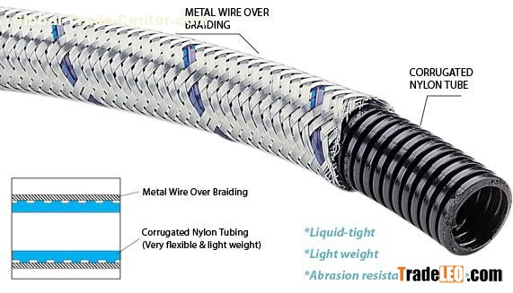 Flexible corrugated nylon conduits (metal wire braided)