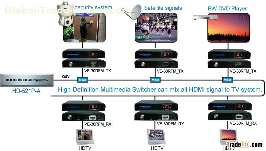 HD-521P-A Multimedia Converter is to make your A/V device more convenient, comfortable,productive and cost-efficient. It can convert multi-channel audio source and video signal source easily (Camera,Smart phone, Computer, etc.); In addition, the multimedia converter is equipped with RJ45 /RJ11 /USB2.0interface, which is for convenient connection with the Ethernet /telephone /USB devices.