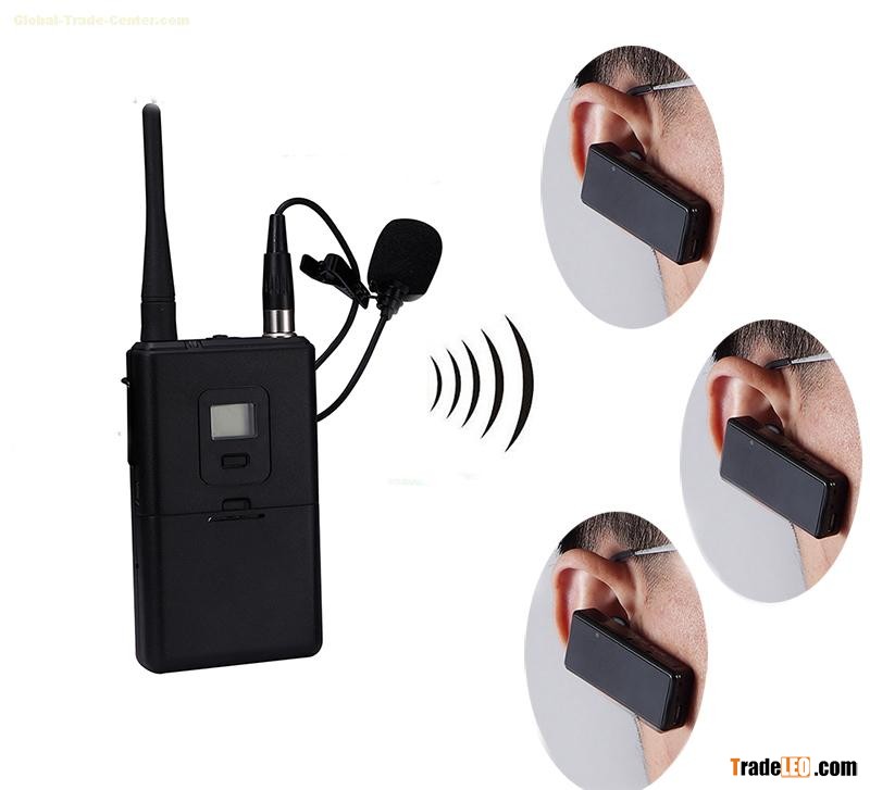 Product DescriptionTour Guide System consists of a transmitter with microphone for the presenter, receivers with earpiece for the listeners and storage charging case.