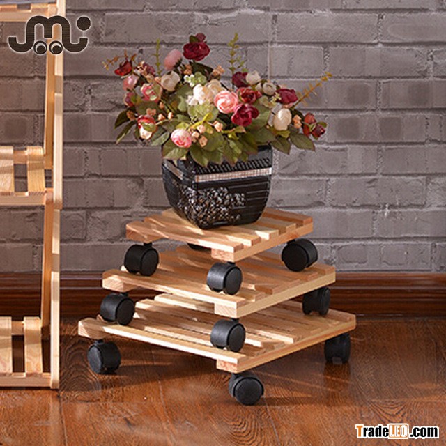 Wholesale unfinished universal wheel wooden bonsai stand