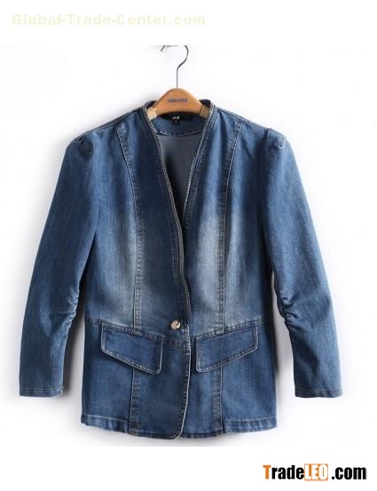 Blue Nine Point Puff Sleeve Draped Denim Jacket