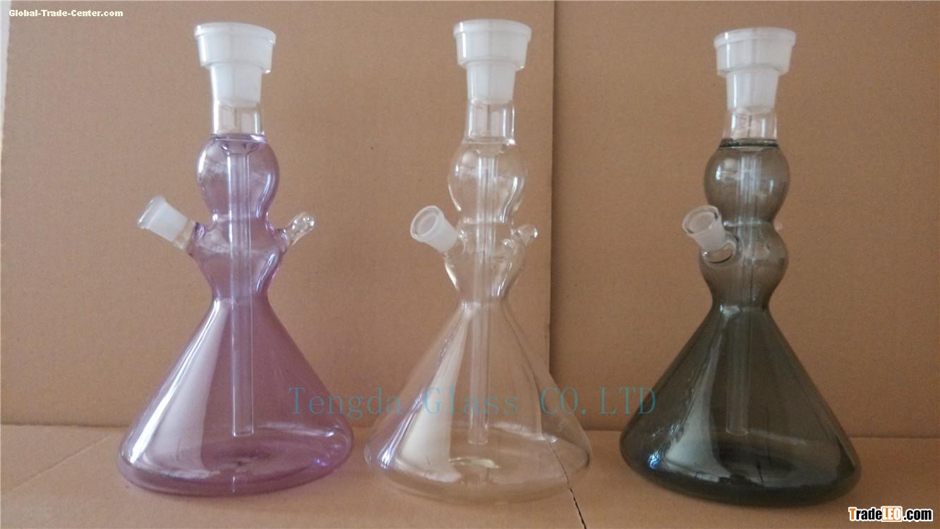 The glass hookah has three colors. It is made by Tengda Glass CO.LTD. As a sino-foreign joint venture, We can make glass hookah and charcoal.