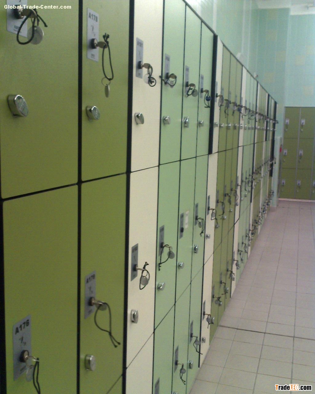 Lockers, LKR lockers and benches are widely used in pools, sauna and leisure center, shopping malls and the like. They are different from traditional iron cabinets which are easily to rust and not resistant to impact. They are made of 100% Phenolic laminate and have superior performances which the traditional cabinets cannot compare to.Performance: resistant to impact, moisture, rust, water and fire, no mold and off-smell, easy to clean and maintain, durable, flexible design, various colors.