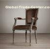 Vintage French Wooden Square Nailhead Back Leather Arm Chair