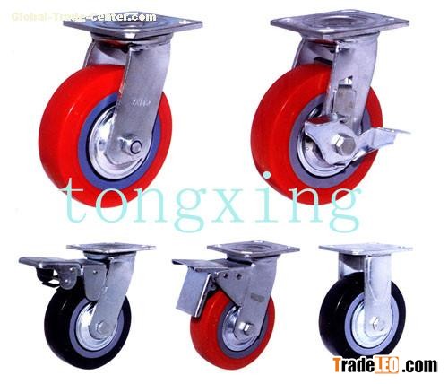 On the material can be divided into Iron core PU-covered casters , plastic core PU-covered casters, Synthetic rubber casters, plastic casters, nylon casters, steel casters, high temperature casters, natural rubber casters,damping casters.
