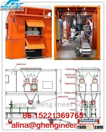 All the elements and component units of the Weighing and Bagging Machine are integrated in 2 Upper and Lower containers, which are international standard size 20' special designed containers for the convenience of shipment. The Upper and Lower container also have forklift holes, and can be moved by forklift.