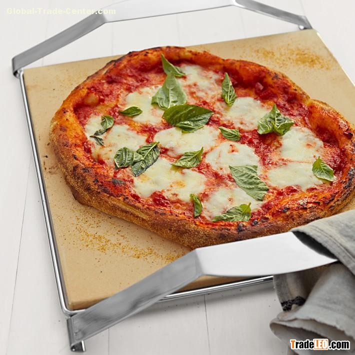 Cooking up brick oven–style pizzas at home is easier than ever with this pizza stone, which sits inside a stainless-steel carrier for safe, quick transfer to the oven or outdoor grill. The stone is made of even-heating cordierite ceramic, an ideal choice for pizza and bread baking that produces a beautifully browned, crispy crust.