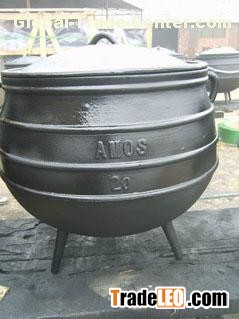 Material: cast iron Size: 2#, 6#, 10#, 14#, 20# and 25# Coating: vegetable oil inside and black painting outside Packing: in wooden crate Characteristic: long heat keeping, durable, convenient outdoor, with African culture, and doing good to human body.