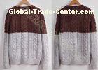 Full Chunky Mens Cable Knit Sweaters in Crew Neck with Coffe Grey Stripes , Two Tone