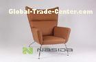 Outdoor or Restaurant Carl Hansen Wing Chair , Brown Leather Living Room Lounge Chairs