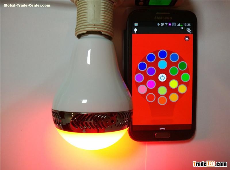 Mini speaker RGBW LED Bulb controled by mobile phone