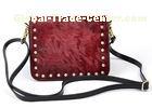 Ladies shoulder bag with long detachable shoulder strap and high quality rivets on the edges, made in genuine pony skin and top grain cowhide leather, many colors for your choice