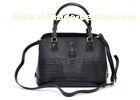 Black Croco Ladies Leather Shoulder Bags with Expandable Sides