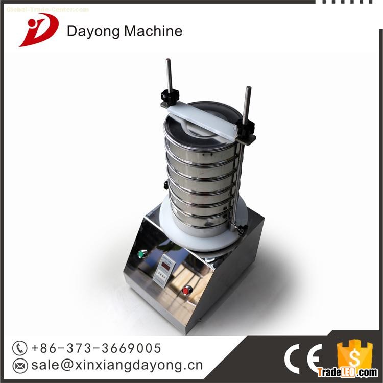 Laboratory vibrating screen with new vertical vibration motor as vibration source,vertical vibration motor on both ends with partial heart heavy hammer.Generating a horizontal , vertical , inclined three-dimensional motion.Vibration force is passed through the screen frame chassis standard sieve box and materials to achieve excellent classification .