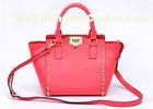 Red Studded Ladies Leather Handbags trapeze bag with zipper / pocket