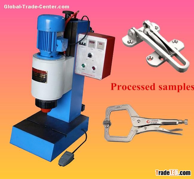 The model of BM9TQ is a kind of smaller desktop pneumatic riveting machine with orbital structure. The machine's power head adjustment up and down to meet variety of workpiece's body and shape. The pneumatic system equipped with aerosol lubricating,double way regulation to control piston stroke speed effectively. Electric control system equipped with counter and time relay to easy and simple operations. T-slot on bench to fixing clamping apparatus available, positioning hole is coaxial with spindle to insure riveting process accuracy at ±0.02mm.