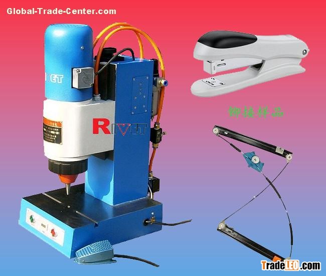 The model of BM6TQ is a kind of smaller desktop pneumatic riveting machine with orbital structure. The machine's power head system adjustment up and down to meet variety of workpiece's body and shape. The pneumatic system equipped with aerosol lubricating, double way regulation to control piston stroke speed effectively. Electric control system equipped with counter and time relay to easy and simple operations. T-slot on bench to fixing clamping apparatus available, positioning hole is coaxial with spindle to insure riveting process accuracy at ±0.02mm.