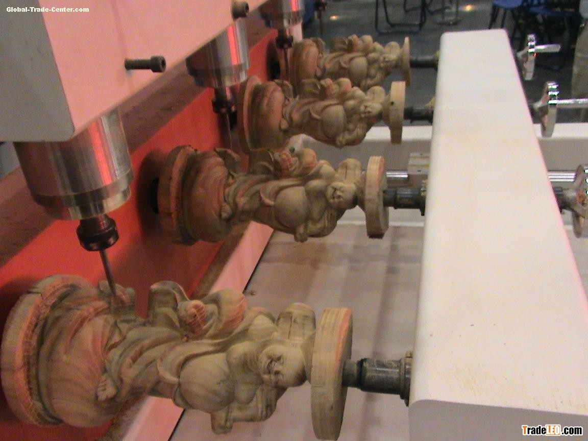 Feature Heavy duty speedy multi-functional 8-Head CNC engraving Machine for processing 3D or complicate workpieces,360 degree rotary for engraving human body,Buddha statue,sculpture,crafts and furniture. Technical Parameter Model Number YZ3D-8-250-1000 Workpiece size 250*1000mm Max load of the working table 1200kg Running mode Servo drive Machine size 2700*2000*2200mm Main spindle motor power 2.2KW(8sets) Main spindle speed 8000-24000r/min Repeated positioning precision 0.05mm Max traveling speed 20m/min Max working speed 15m/min Total weight about 2500kg Power supply AC380V±15% 50HZ