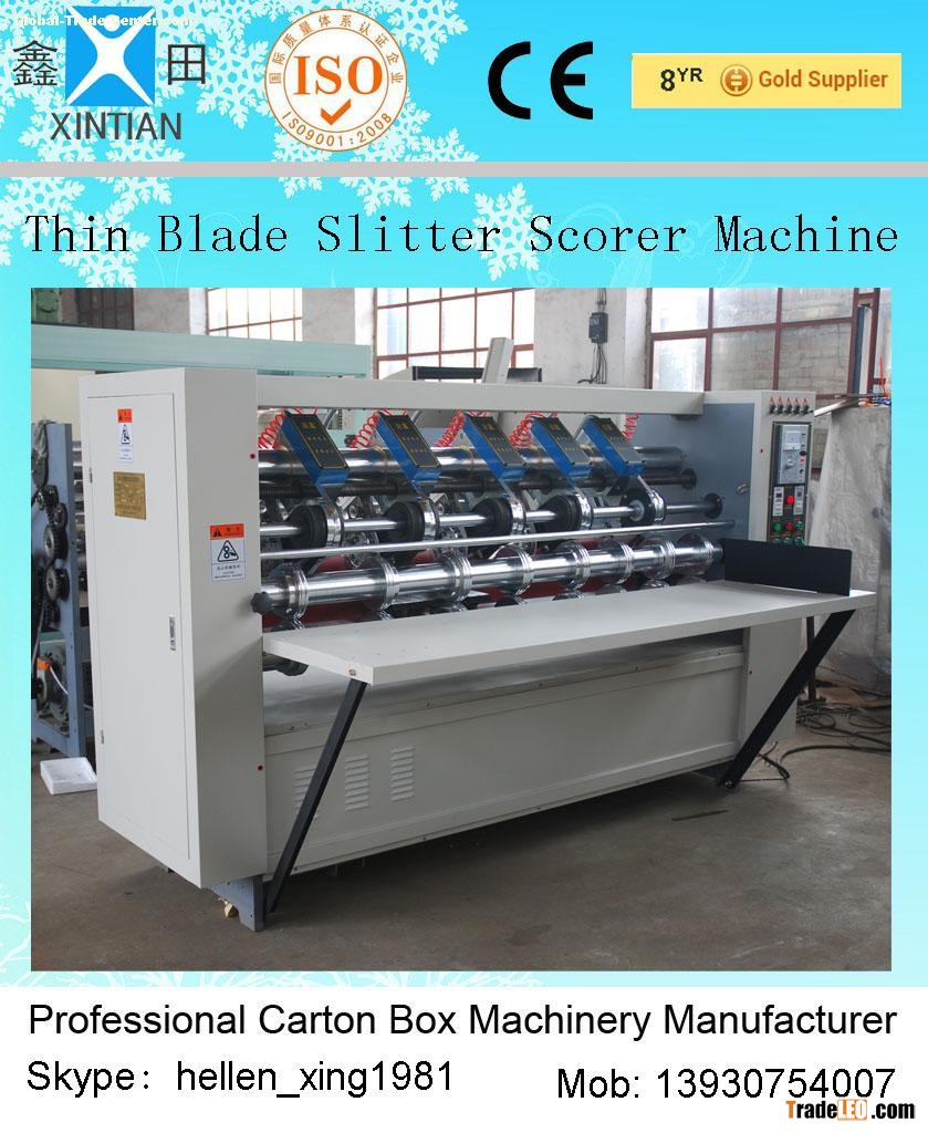 It overcomes the problem of galling and pressed corrugation caused by the traditional slitting and cutting by the thick angle blade. The paperboard edge is smooth and bright after its slitting and cutting, so as to improve the whole quality and appearance, and especially to the fundamental promotion of the quality of the printing after this procession.