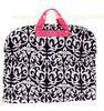 Folding Traveling Garment Bag 40'' Pink Trim Damask Silver Pewter Hardware