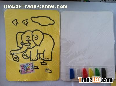 3,HOW TO PLAY:painting with sand on the cardboard,color board for sand color reference.