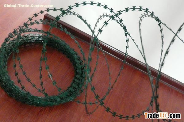 Detailed Product Description 1.razor barbed wire 2.wire dia:BWG12-BWG20 3.barbed distance:26-100mm 4.barbed length:10-65mm 5.BTO-10,12,22,CBT-65
