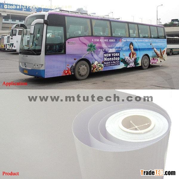 Features:a) For long term outdoor signs, exhibition panels and displays use.b) Easy to mount on smooth surfaces.c) Waterproof property. Specifications:a) PVC film thickness: 8s,10s.b) Grammage (g/sqm):120g/sqm, 140g/sqm.c) Width(m): 0.914,1.06,1.27,1.37,1.52.d) Length: 50m, 100m. Applications:a) Great for vehicle advertisements on cars, buses, trains and trams.b) Excellent resistance to a wide range of physical and climatic conditions.c) for digital printing, large format printing, wall coverings and making signs. Inner packing:Plastic bagsOuter packing:Cartons