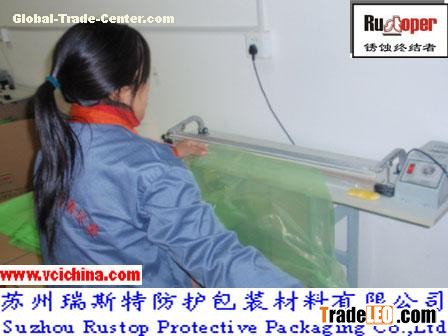 Rustoper (corrosion terminator)VCI plastic bag is made by high-quality VCI films as basic materials. VCI plastic bag is the new generation of creative hi-tech products based on the combination of the high polymer material and VCI antirust technology. After the bag is used to pack and seal the articles for antirust, VCI contained in the bag begins to sublimate and volatilize the antirust gas factors which diffuse and penetrate into the surfaces of the articles for antirust and adhere on them to form a compact protection bag with the thickness of monomolecular to avoid the surfaces of the articles for antirust in contact with all factors inducing corrosion, thus the corrosion is effectively prevented.