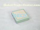 a. Plastic box in shining green specialty paper matching up with beige velvet top exterior ;