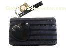 Reusable Jucy Navy Velet Fabric Wallet Bag With Sequin Lines, Plastic Zipper