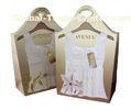 350g artpaper with shining lamination ,4 c printing on front and back, pattern embossed, dyecut a ellipse handle hole and reinforce by cardboard