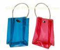 Square bottom blue / red Transparent PVC Clothes Packaging Bags rain proof with strap