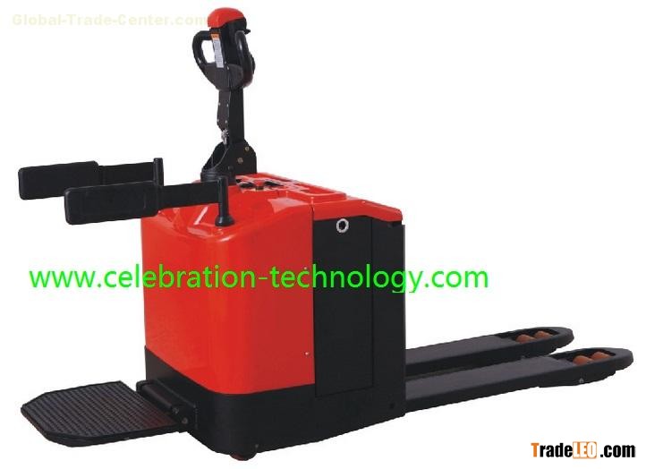 A fully powered pallet truck which can lift and transfer pallets quickly and easily.