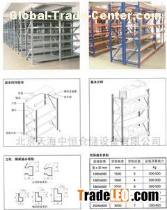 On each effective standard bearer 200-800kg.Medium-sized shelves by the piece of column,beams,cross-cross bracing combination;beam using a specially designed cold-rolled P-type closed beams,the structure has a simple,reliable,light weigh,strong carrying capacity,low cost;card column and the column connection with a specially designed safety pin, you can ensure that the beams under external impact will not fall off ;laminates using the internationally popular strip laminates,the thickness of the laminate,the number of stiffeners to the decision layer contained the requirements,bearing capacity,resistant to wear,and replace the simple,low maintenance costs.B can be the master of the medium-sized shelves,vice free-form arrangement;can take advantage of the stability of the medium-sized shelf B,build a loft shelf;manually applied to the access,or the parts box,turnover box supporting load scattered heavy cargo.