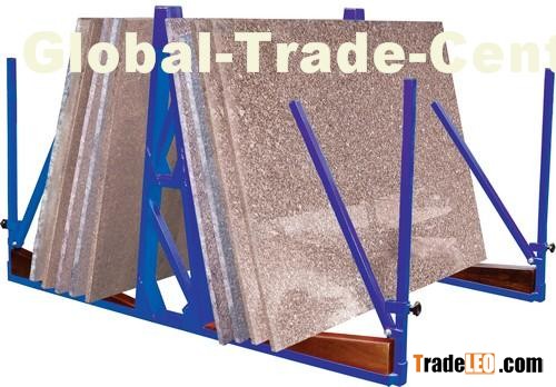 - The four (4) safety securing bars provide a place to lean slabs against while retrieving a slab under them. This requires less lifting and moving of slabs from place to place.