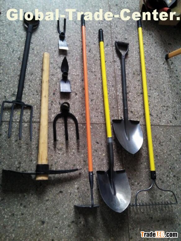 many kinds of garden tools,shovel,rake,hoe etc with fiberglass long handle