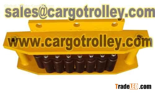 Roller dollies structure is simple and easy to operate. Capacity from 2.5 tons for one unit to 60 tons. More roller dollies pictures please via our website: 3w dot cargotrolley dot com.