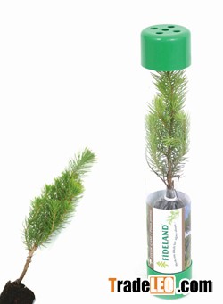 Live tree seedling in plastic tube
