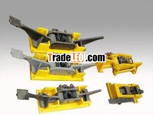 Safety foot clamps are utilized with replaceable carbide steel jaws to hold the drill string suspended in the bore hole. Jaws are available for a wide range of sizes.