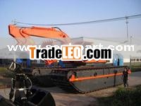 1.Tracked pontoon structure ensures low ground pressure so that it can travel and work on swamp and soft areas, it can also be towed to move forward on water.