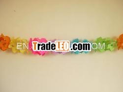 The paper garlands were generally used for the party ofChristmas, New Year’s celebration, Halloween, Birthday, Wedding andmany other parties. Items include paper garland, papergarlands with hanging decorations, paper balls, paper fans, letterbanners and the cardboard printed decorations. There are 8 colors(Red, Orange, Yellow, Green, Blue, Purple, lilac, Pink) in 3assortment for normal parties. For Wedding, we usually use thecolor of Red, White, Champagne, Chocolate, Anise green, etc. ForHalloween, the garlands could be in White, Black, purple and Orangeor assortment.