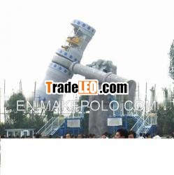 "Sky Hammer" is an amusement facility with its huge armsbeing inclining up and down. The post makes a revolution motionclock wise and counter-clockwise, and the symmetrical cabins oneach side loop the loop along the level axle, turning just inopposite directions. The 3D looping movement will make the touristsfeel that they are being thrown up into the vast space the momentand down to the deep bottom the next. The strong excitement andunique design will make the visitors have a special experience ofit.