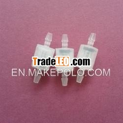 Function:1.Prevents damage to equipment, pumps, and flow systems bypreventing backflow2.Tubing barbed check valves are for an inert high puritysmooth and clear flow path.3.Use with liquids and gases for pressure or vacuumapplications.4.The check valves has a low pressure drop and can bespecified with a wide variety of cracking pressures