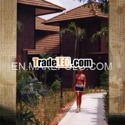 Curtain wall, stainless steel staircase, balcony and canvas roof can be used as well and give the cabin building a modern look.