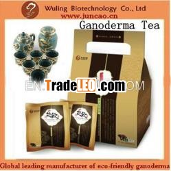 The mass production of tree-cultivated ganoderma greatlyconsumes forest resources each year, which is not conducive to therational use of forest resources or environmental protection. Butfor the cultivation of our patented technology "JuncaoGanoderma",Chinese herbs are used as raw materials, which is moreenvironmentally friendly; the technology avoids a great deal ofecological disruptions caused by cutting down a large number oftrees, and does not have the problem of soil or heavy metalpollution. Comparsion: The above table shows thatJuncao ganoderma is "Low carbon & Topquality". Forover 2000 years Ganoderma have been recognized by chinese medicalprofessional as a valuable remedy. Numerous studies haverevealed that it can help prevent the spread of cancer, especiallyof the prostate, breast, liver and spleen. Also, Ganoderma iscapable of improving immunity, memory, regulating blood pressure,protecting liver, relieving cough and delayingaging. Productpicture: Name: Health drinksorganic red reishi herbal teaUsage: boil withwater,daily drink continouslyApplicableFor: 1. Improve blood circulation to the coronaryartery 2. Sub-health population for eliminatingsub-health,recovering gene's stability3. Regulate low and highblood pressure.